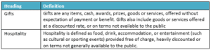Similarly, hospitality such as working lunches may be accepted to maintain good relationships with key contacts, provided the hospitality is reasonable in the circumstances.