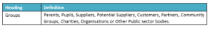 This policy refers to all gifts offered from the following groups. This is not an exhaustive list.